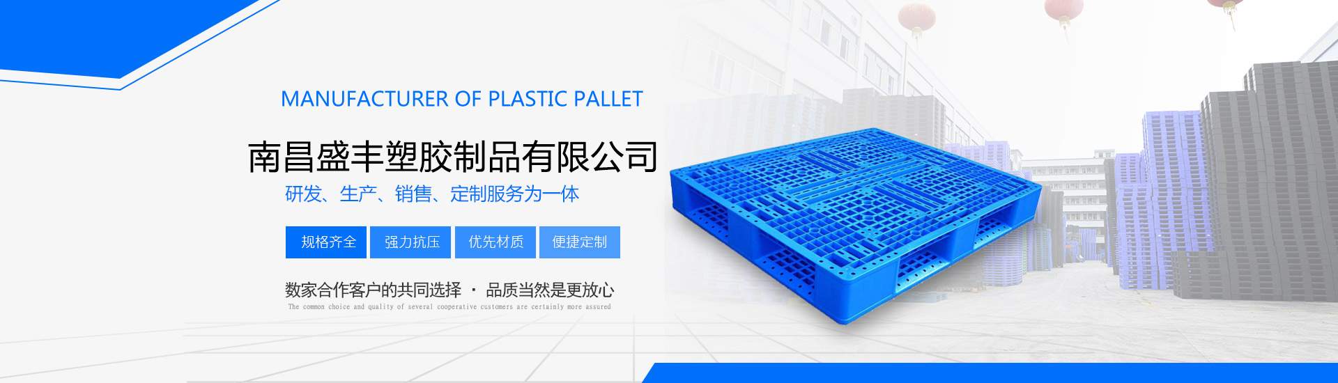 南昌盛豐塑膠制品有限公司擁有先進(jìn)大型注塑、吹塑滾塑成型設(shè)備,技術(shù)力量雄厚,是專業(yè)生產(chǎn)工業(yè)塑料產(chǎn)品的企業(yè)。主營(yíng)產(chǎn)品:塑料托盤、凹槽印刷托盤、煙標(biāo)煙盒印刷托盤、貨架叉車專用托盤、出口托盤、抗摔吹塑托盤、塑料棧板、塑料吹塑托盤、塑料地臺(tái)板、塑料倉(cāng)庫(kù)防潮板、塑料周轉(zhuǎn)箱、EU物流箱、歐標(biāo)箱、折疊箱、工具箱、食品箱、面包箱、面包架、周轉(zhuǎn)筐、籮、化工桶、PE水塔、塑料PE水箱、垃圾桶、塑料加藥箱、塑料一噸方桶、塑料IBC噸桶、打不爛餐具消毒箱、等制品。我們秉承誠(chéng)信服務(wù)的意念,在產(chǎn)品的售后服務(wù)上,我們有著專業(yè)的業(yè)務(wù)人員定時(shí)跟進(jìn),確??蛻魸M意度!